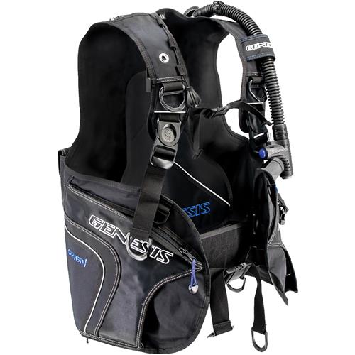 The Genesis Origin is a lightweight jacket style weight integrated buoyancy compensator. It is the ideal entry level BCD for the budget conscious new diver. Durable and stable, the Origin is ideal for the dive center looking for an affordable weight integrated jacket for rental purposes. The two large zippered pockets are functional and accessible for all divers and instructors. The Origin BCD is made from durable fade resistant 420-Denier nylon fabric with a urethane lamination interior air cell with radio frequency (RF) welded seams for airtight integrity. BCD has a removable closed-cell neoprene pad on a rigid backpack.